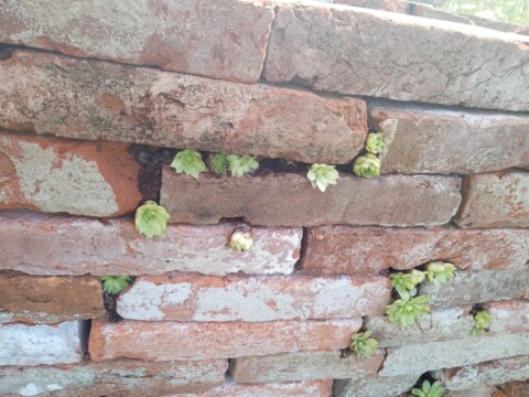 Mit viel Fleiß haben wir aus alten Ziegelsteinen eine Mauer gebaut. In den Zwischenräumen dürfen Insekten einziehen und wohnen.