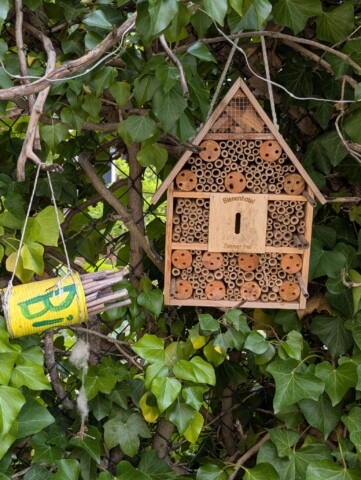 4. Zusätzlich stellen wir Nistmöglichkeiten für Wildbienen auf