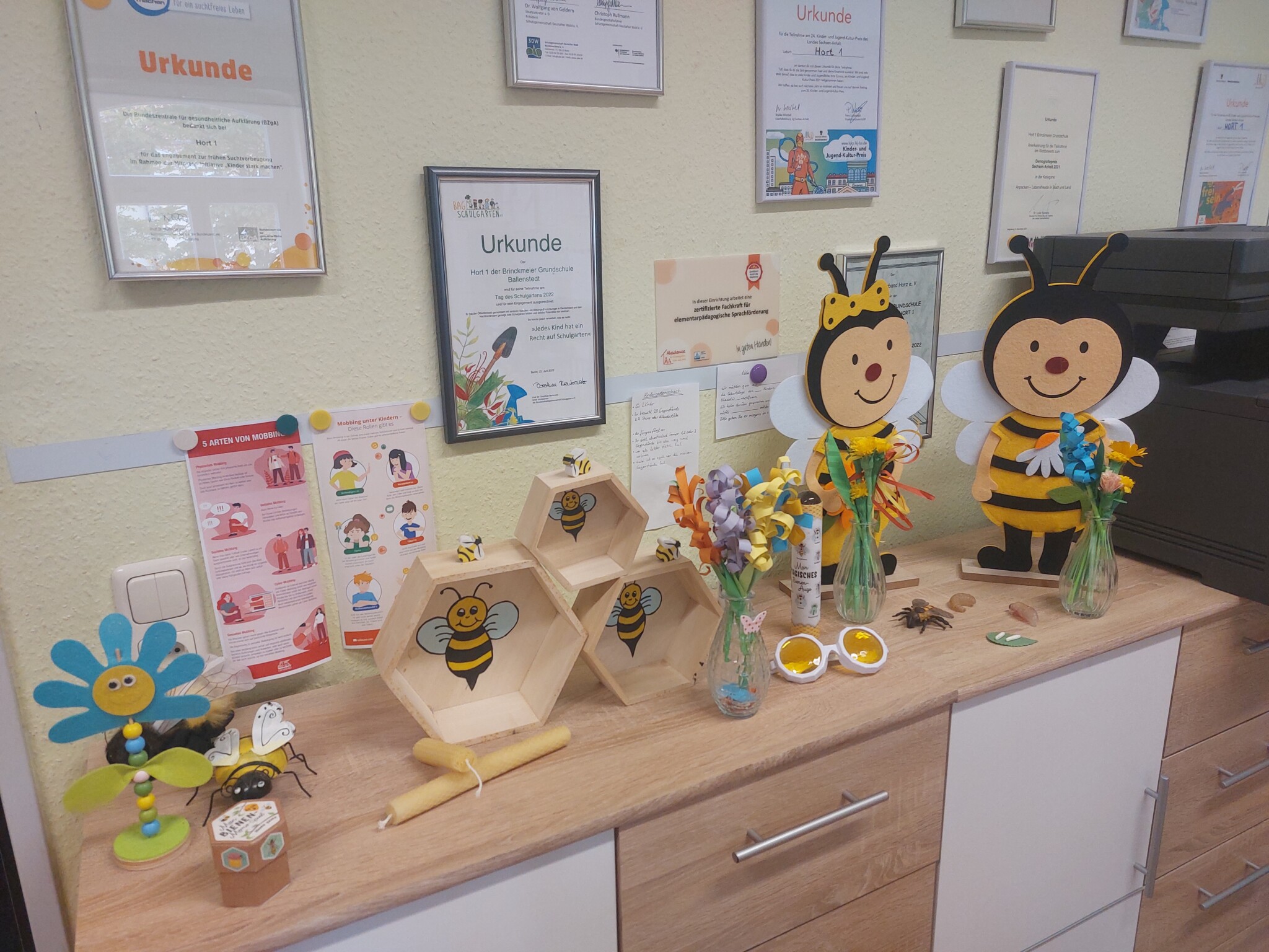 Wir als Horteinrichtung haben eine Schulimkerei und bauen derzeit einen alten Bienen Wagen zu einem außerschulischen Lernort und einer Begegnungsstätte um. Wir beteiligen uns an verschiedenen Pflanzaktionen, bewirtschaften mit den Kindern einen kleinen Garten und behandeln in verschiedensten Projekten gemeinsam mit den Kindern Themen rund um das Thema Bienen, Insekten, Umwelt- und Naturschutz und wie man selbst, auch im Kleinen, dazu beitragen kann, die Natur zu schützen.