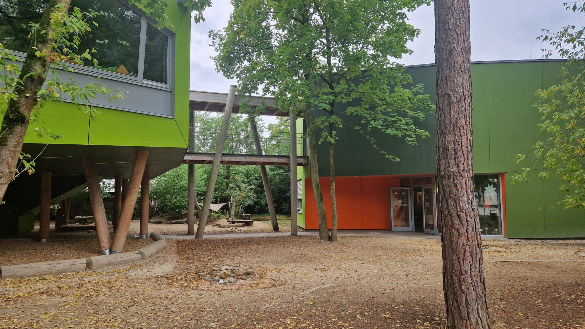 Unsere Baumhäuser sind in Flora und Fauna des Schulgeländes eingebunden.