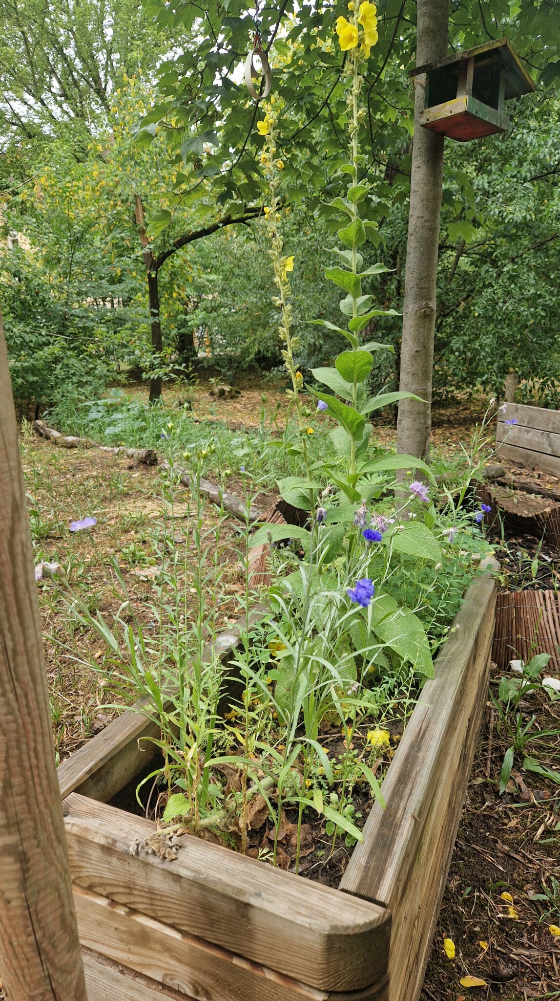 Bunte Blumenbeete und Insektenhotels im Kiefernwäldchen