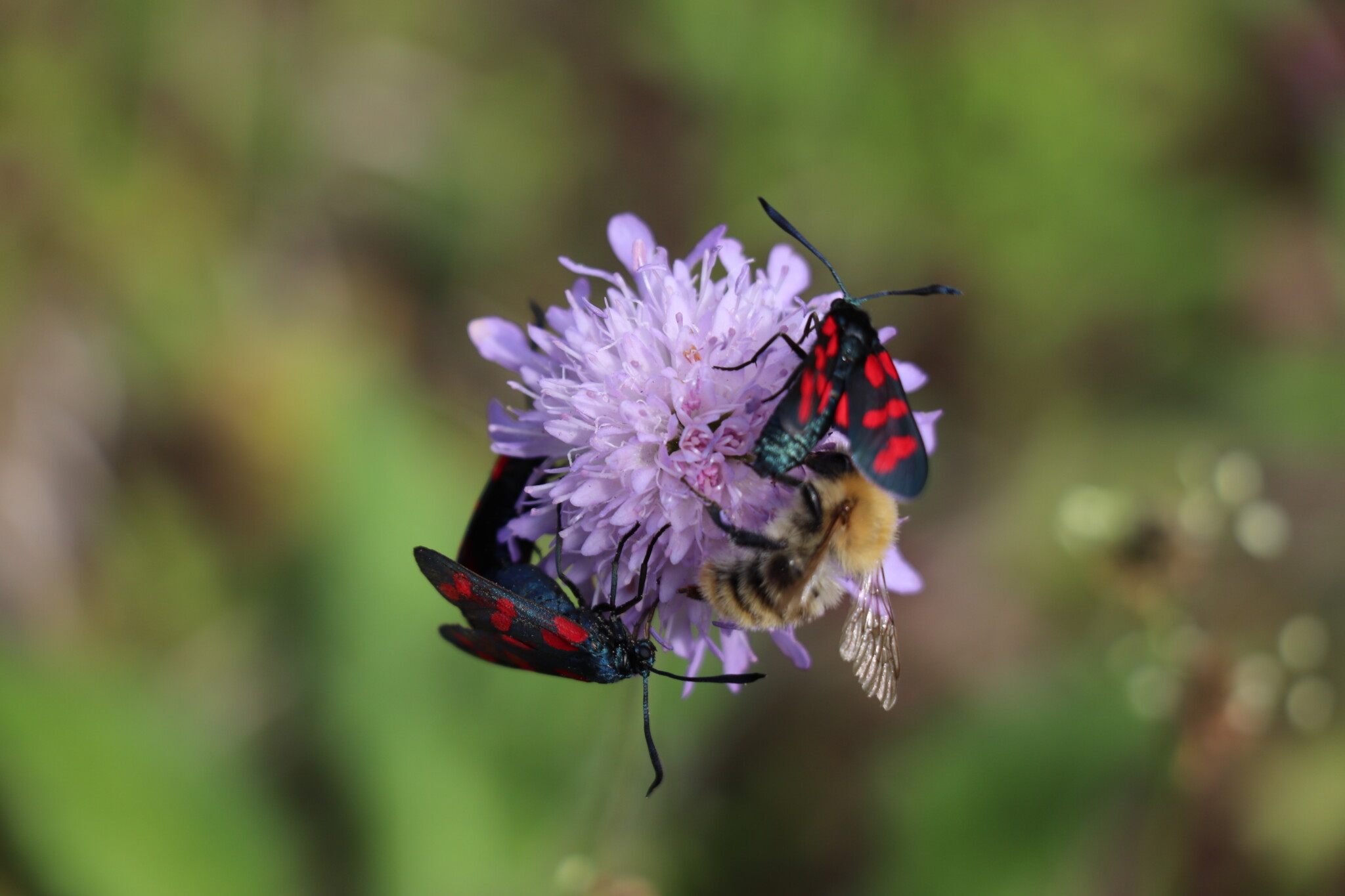 - Wildbienenmonitoring durch NABU-Waldinstitut (jährlich eine festgelegte naturnahe Fläche). Auf einzelnen Flächen konnten zwischen 35 und 68 Wildbienenarten bestimmt werden. Auf dieser Ergebnisbasis konnten die untersuchten Flächen in Anlehnung an Schwenninger & Wolf-Schwenninger (2004) in die Wertstufen 6 (hohe bzw. lokale Bedeutung) bis 8b (sehr hohe bzw. überregionale Bedeutung) eingestuft werden. Auf der vorgestellten Fläche findet das Wildbienen- und Tagfaltermonitoring durch das NABU Waldinstitut im laufenden Jahr 2025 statt. Bereits heute rechnet man damit, dass sich zahlreiche Wildbienenarten u.a. Insekten hier niedergelassen haben.