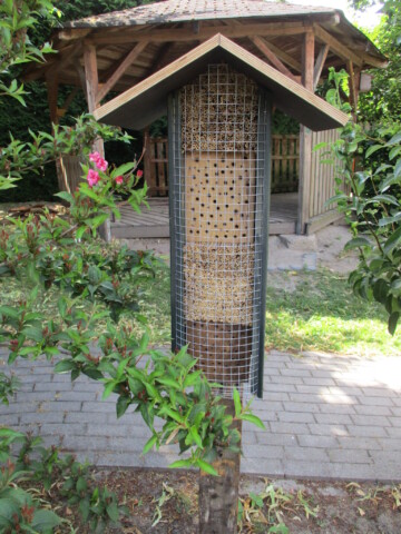 Die Örtlichkeit des Sandarium liegt in einem ruhigen, sonnigen Bereich. Unser Vorhaben ist es, das vorhandene Hochbeet etwas auszukoffern und eine neue Schicht mit Sand anzulegen. Gepflanzt werden sollen Kräuter und Wildblumen für Wildbienen. In einer kleinen Ecke des Sandarium, wird es eine kleine “Bade Oase“ für die Wildbienen geben, die aus Kieselsteinen bestehen wird. Abgerundet wird das Sandarium mit Totholz – in das bohren unsere Kinder kleine Löcher, die als Rückzugsort dienen.