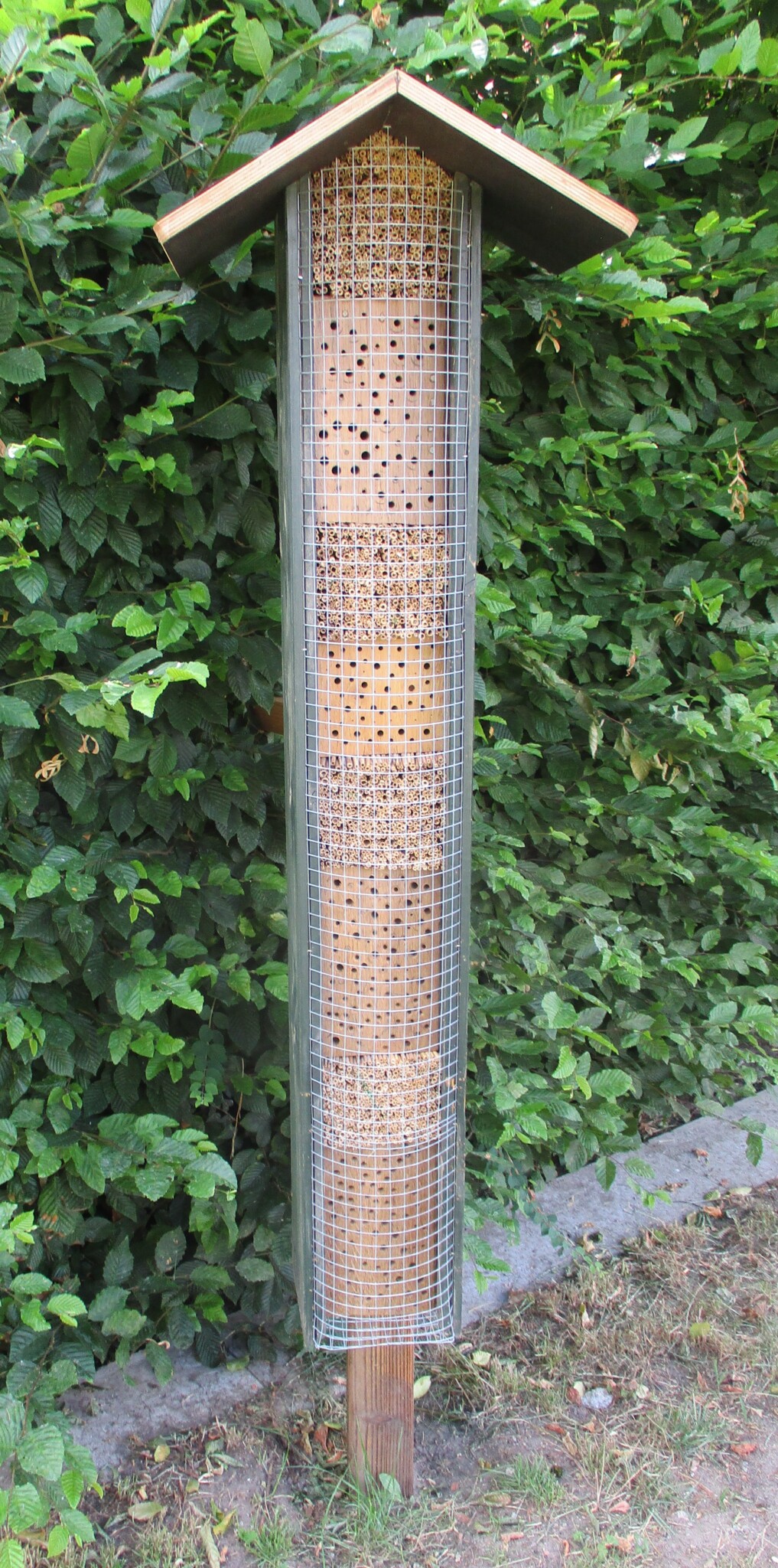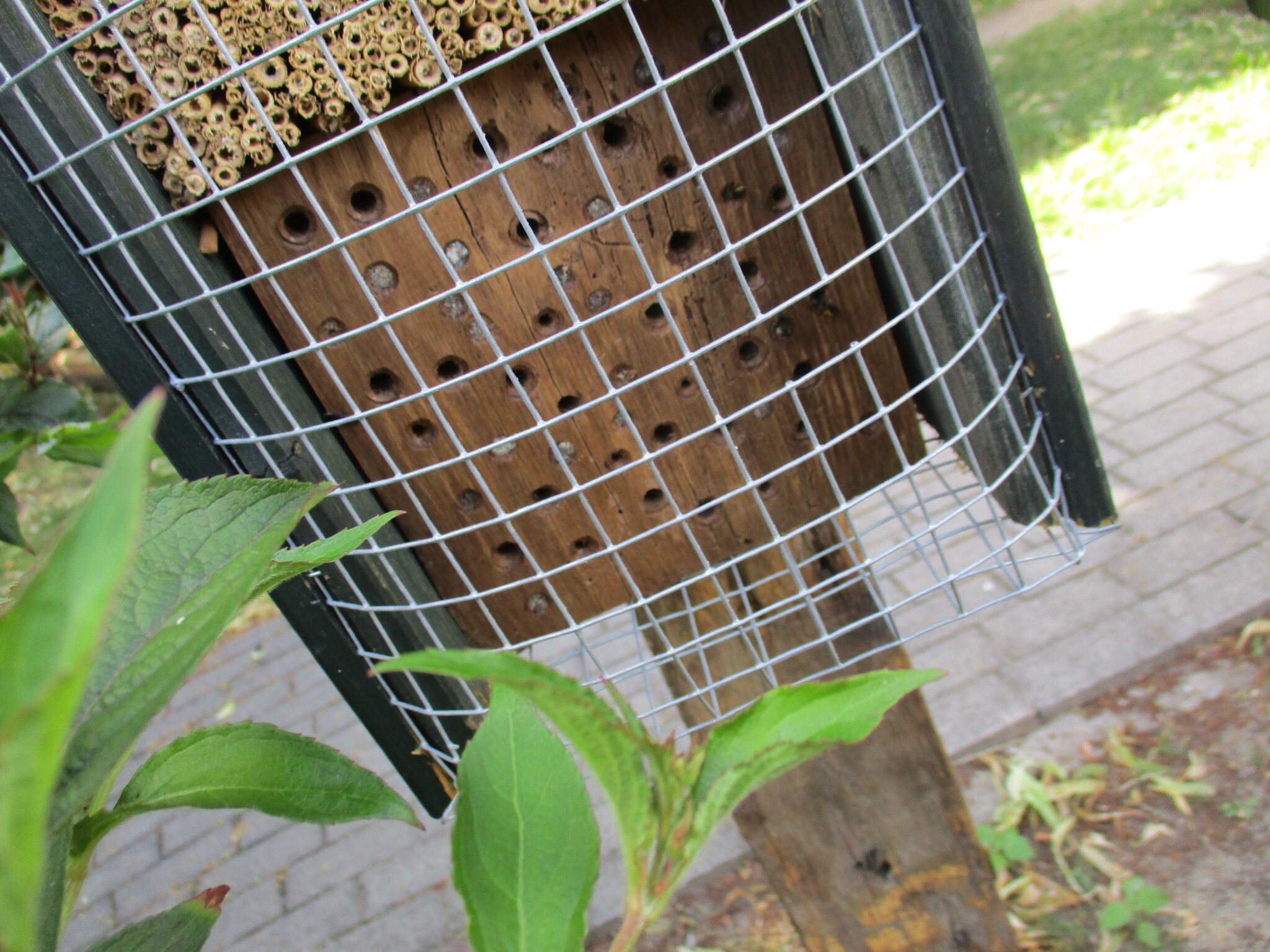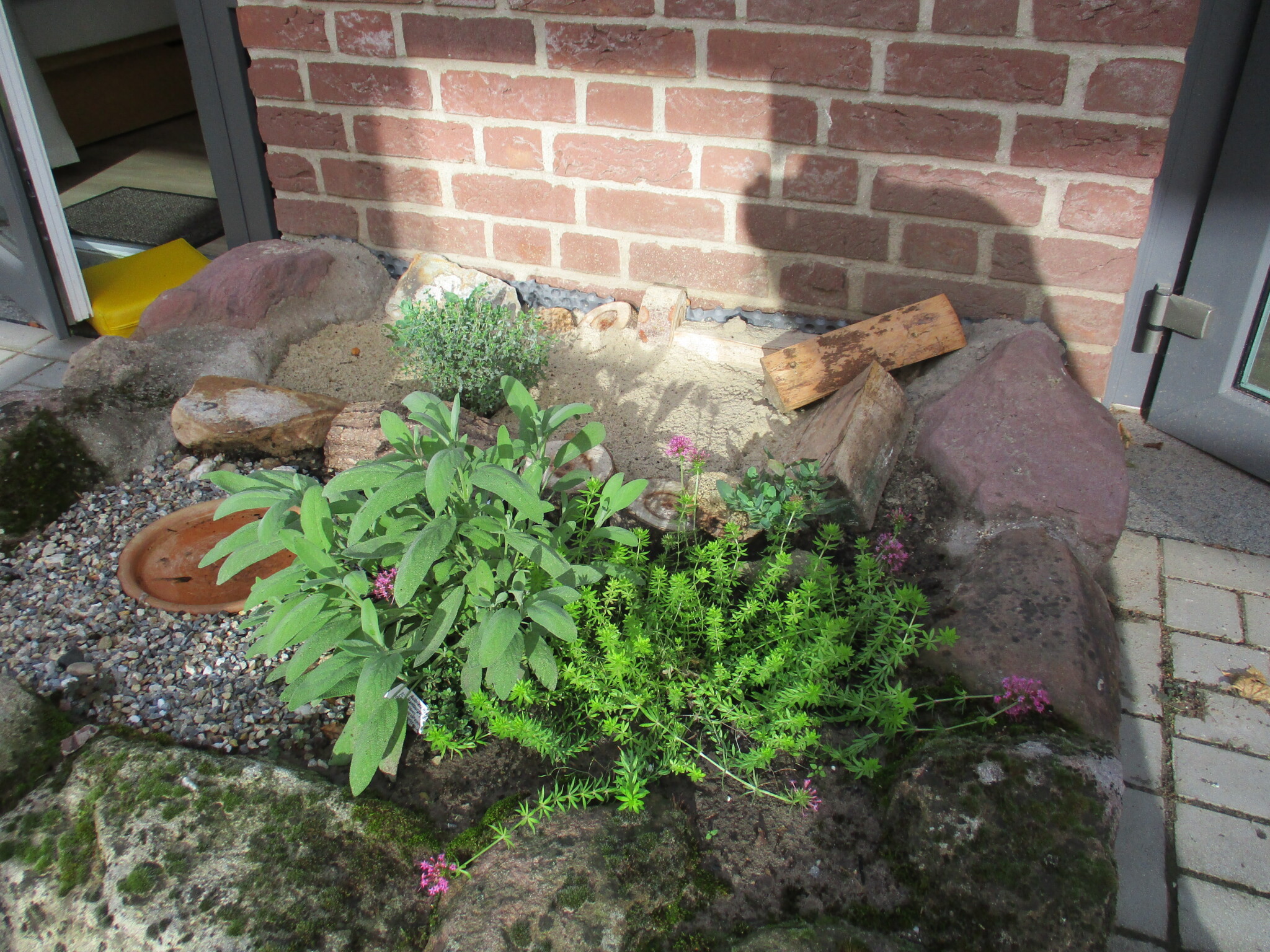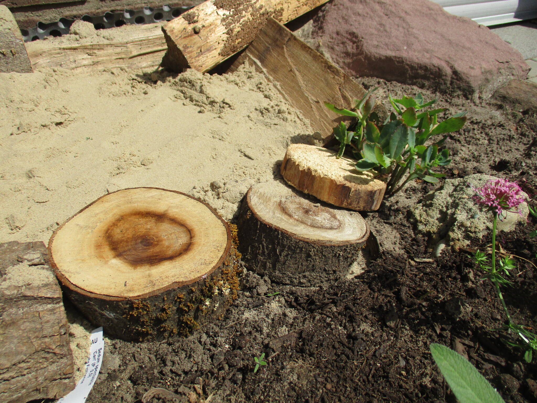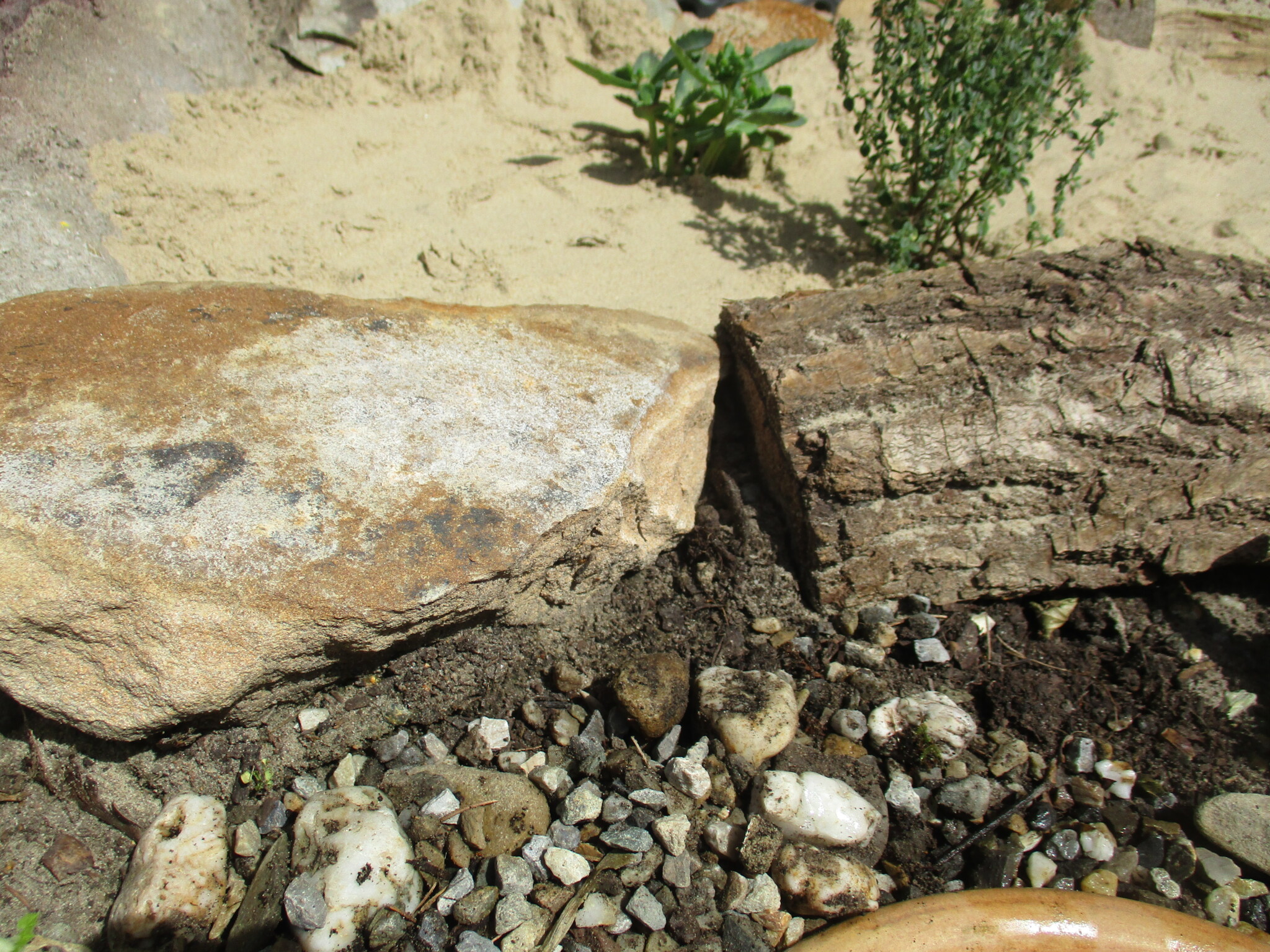 Die Örtlichkeit des Sandarium liegt in einem ruhigen, sonnigen Bereich. Unser Vorhaben ist es, das vorhandene Hochbeet etwas auszukoffern und eine neue Schicht mit Sand anzulegen. Gepflanzt werden sollen Kräuter und Wildblumen für Wildbienen. In einer kleinen Ecke des Sandarium, wird es eine kleine “Bade Oase“ für die Wildbienen geben, die aus Kieselsteinen bestehen wird. Abgerundet wird das Sandarium mit Totholz – in das bohren unsere Kinder kleine Löcher, die als Rückzugsort dienen.
