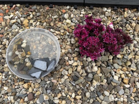 Podest mit Steinen bei der Übernahme der Wohnung im Juni 2022