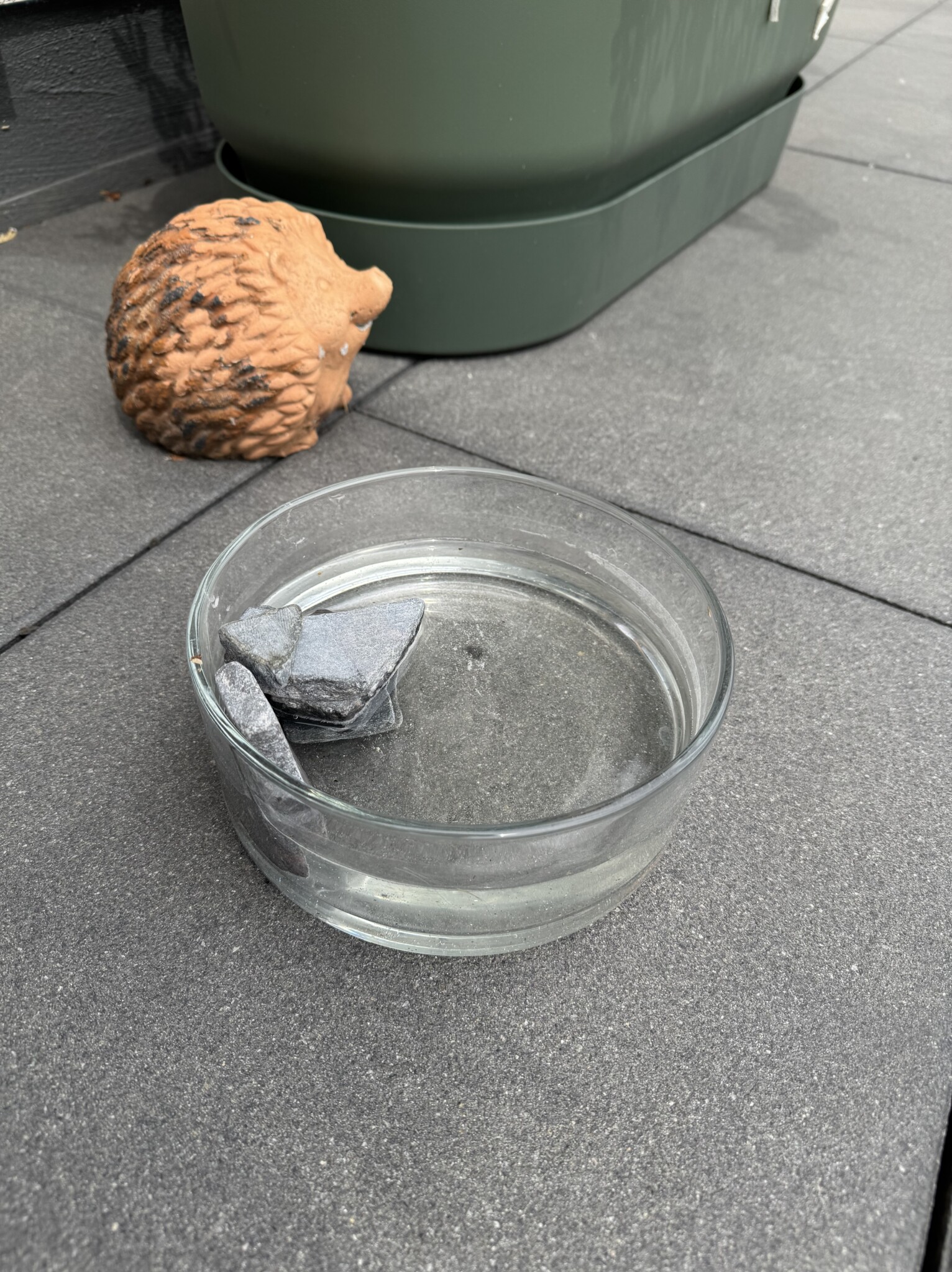 Podest dann 2023+2024 mit alten Ikea Schalen bepflanzt