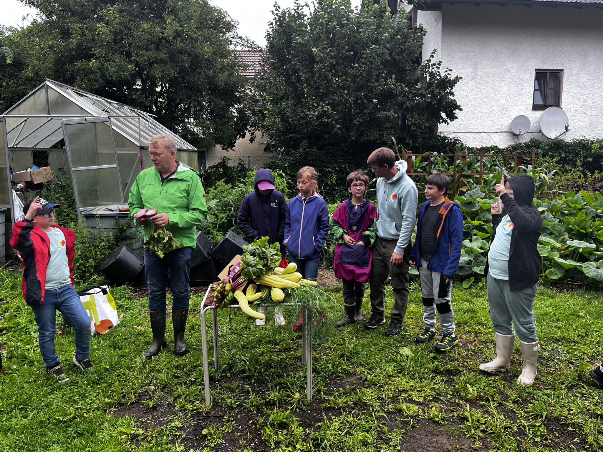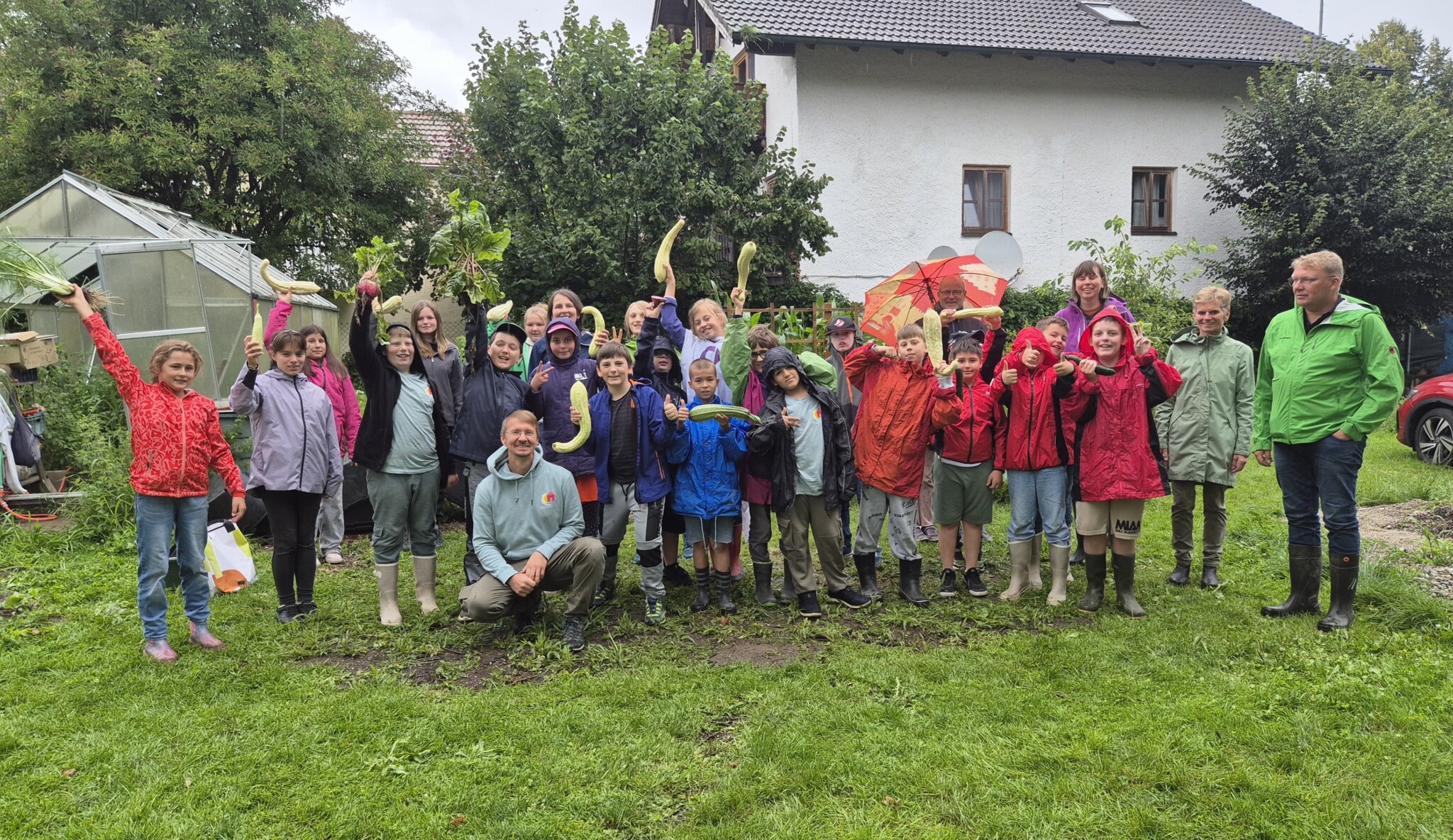 Gesamte Schulfamilie (mehrere Lehrer, Hausmeister, Schulleitung, Betreungskräfte im Ganztag), Landschaftspfleger Rafael Dengler und unser Acker Coach Hilarius Häußler.