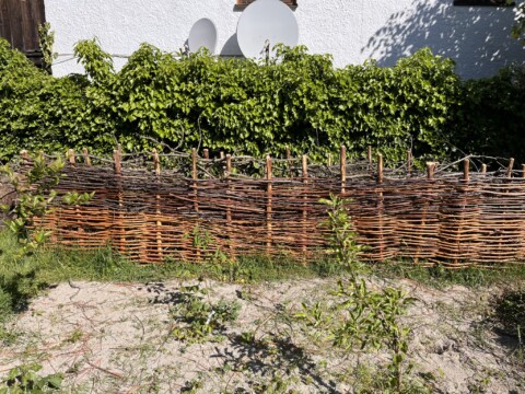 Pfosten setzen, Weiden einflechten und zum Schluss befüllen.