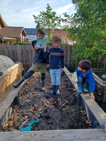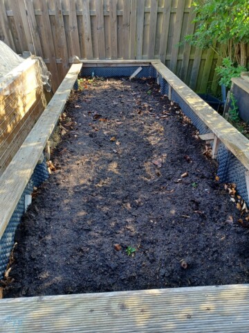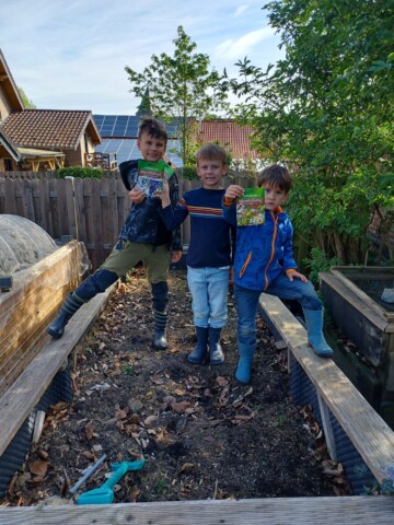 - Es wurde ein Hochbeet, (was leider bereits länger nicht mehr genutzt wird ) mit Erde aufgefüllt und darin die unterschiedlichsten Blumensamen eingepflanzt.