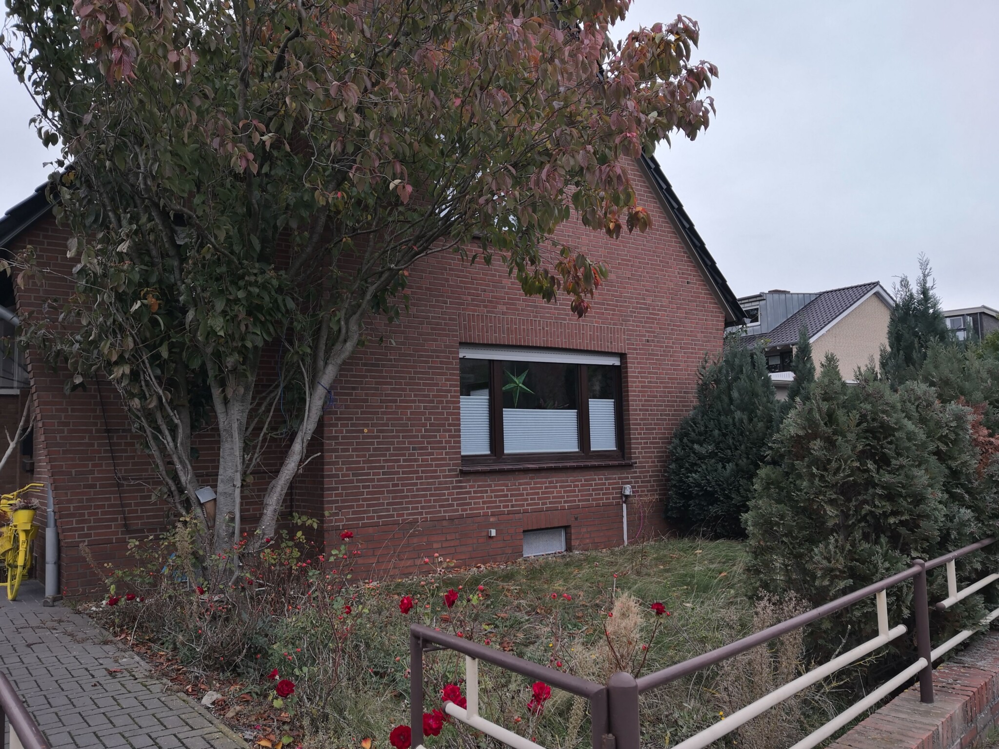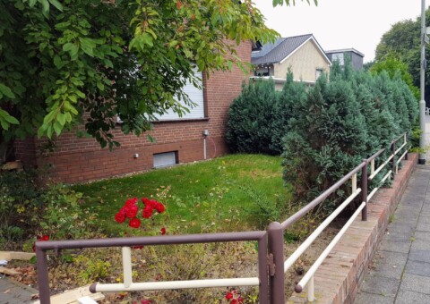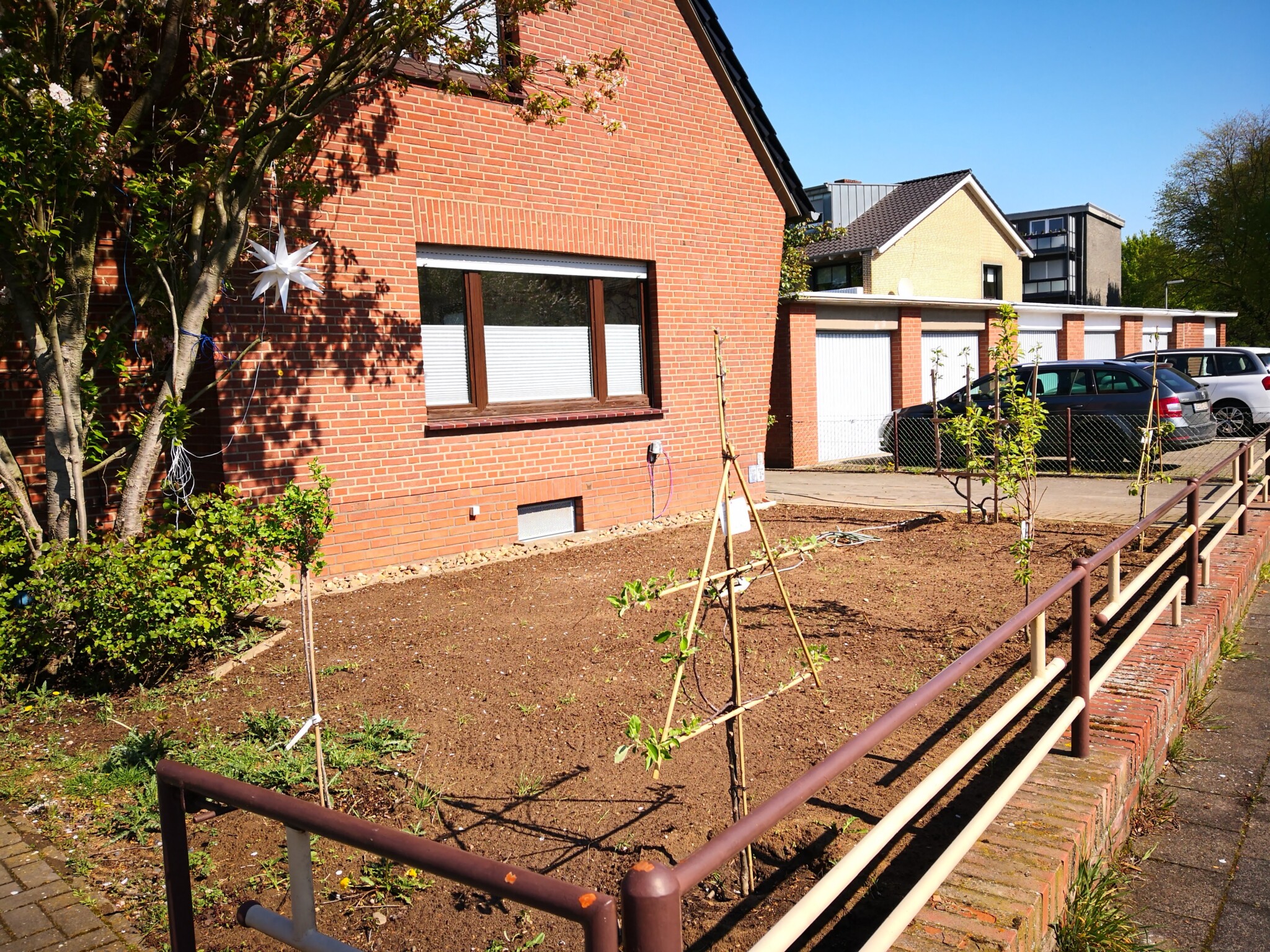Der Vorgarten ist etwa 4 x 9 Meter groß (ca. 36 m²) und nach Süden ausgerichtet, also den ganzen Tag über sonnig.