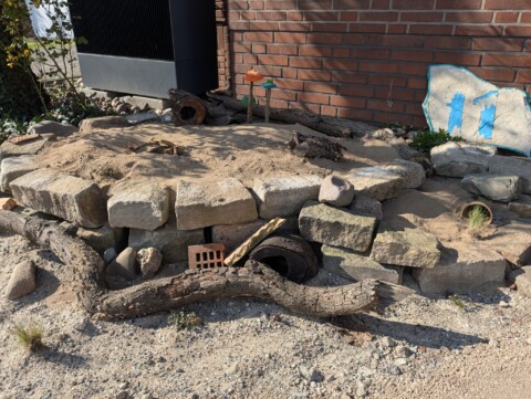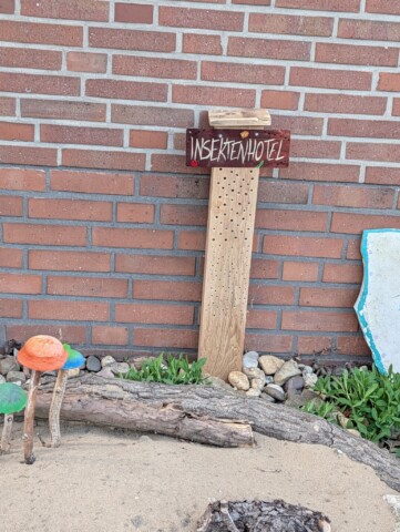 Ergänzt wird der Garten durch offene Bodenstellen sowie Strukturen wie Totholz, Steine und Niströhren, die verschiedenen Insektenarten Lebensraum und Rückzugsorte bieten.