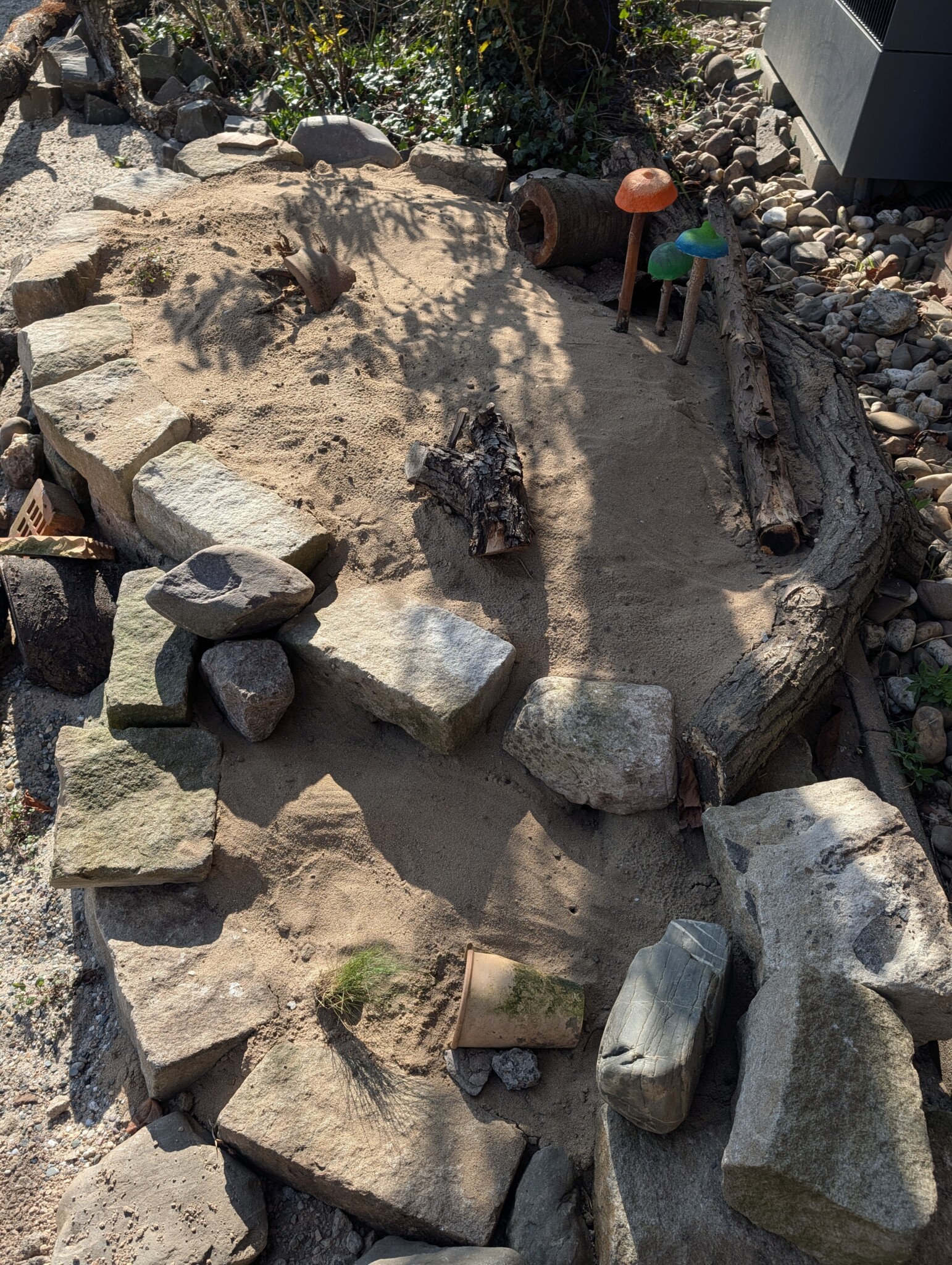 Die Gestaltung orientiert sich an natürlichen Trocken- und Magerstandorten. Neben trockenheitsverträglichen Wildstauden entsteht ein Sandarium als Nistplatz für bodenbrütende Wildbienen.