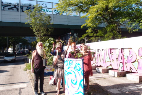 Die BI setzt sich seit 1997 mit vielen verschiedenen Aktionen für die Belebung und Verschönerung des Viertels ein und war maßgeblich an der Umgestaltung des Hans-Mielich- Platzes beteiligt. Als wir erfuhren, dass die LHM mit dem stillgelegten Bushalt 58 keine Pläne hatte, nahmen wir uns der Fläche an und schufen aus einer Ashaltwüste einen kreativen Treffpunkt mit Pflanztrögen,bepflanzten Installationen & einer zu Ehren Beuys gepflanzten Blumenesche .