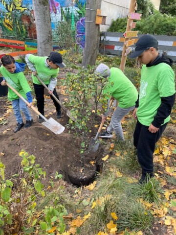 Wir treffen uns einmal die Woche in unserer Garten AG und bearbeiten unseren Garten und die umliegenden Baumscheiben außerhalb des Nachbarschaftshauses.